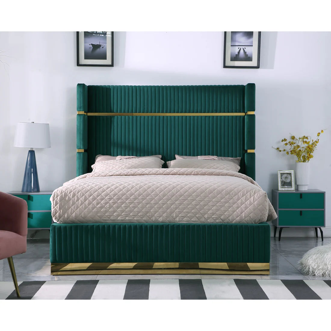 Experience modern comfort with the B786 Aspen bed in sleek green. Featuring a sturdy design that requires no box spring, this bed offers both convenience and style. Its solid construction ensures lasting support, making it an ideal centerpiece for your bedroom.